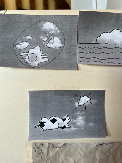 À l'occasion de l'exposition Les Arts à Dompierre, j'ai réalisé un travail avec les enfants de l'école de Domfront sur le thème des nuages et des rêves, des travaux exposés avec les artistes professionnels